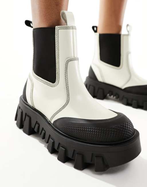 Tommy Jeans chunky chelsea mixed material boots in cream ASOS Very well made.